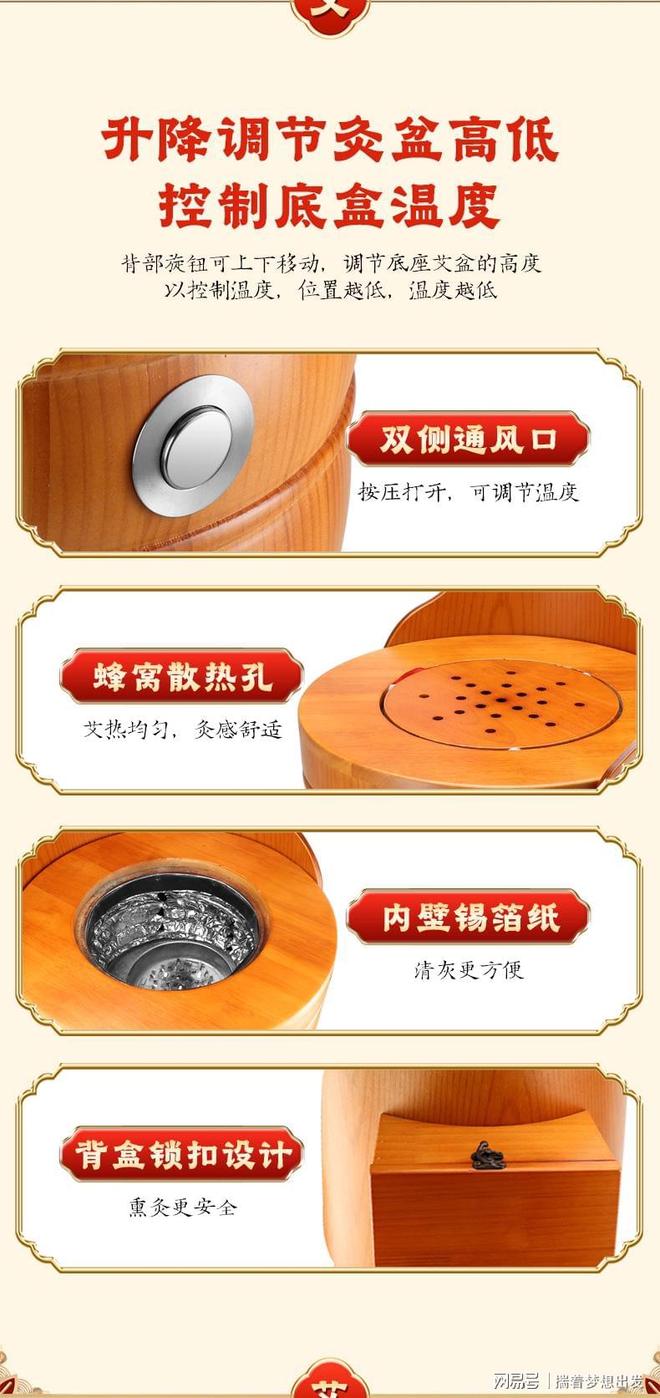 腰盒侧进风口、旋转升降调节灸盆高度,精准控制温度,避免烫伤,享受恰到好处的温暖渗透。